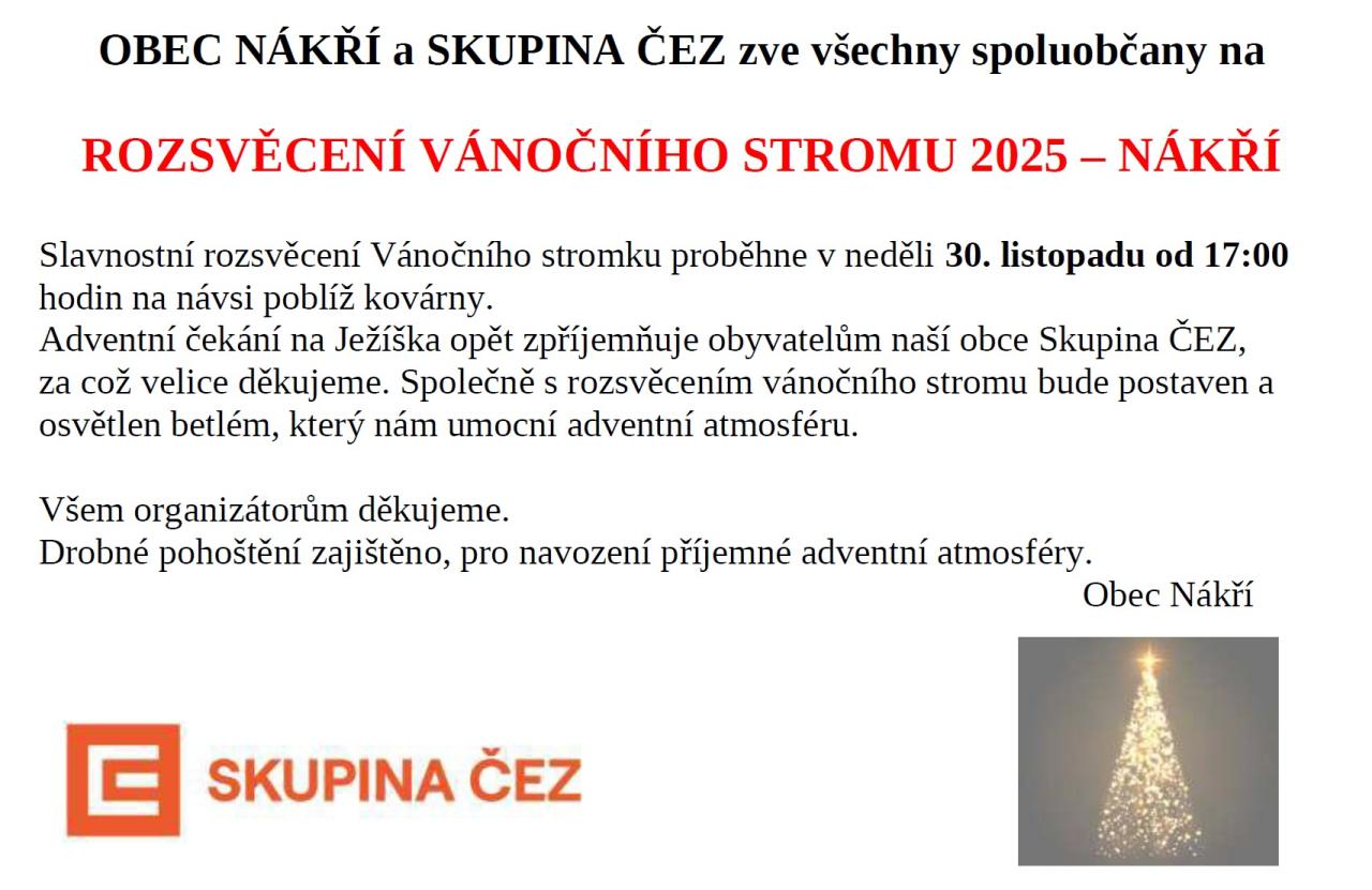 ROZSVĚCENÍ VÁNOČNÍHO STROMU 2025 – NÁKŘÍ